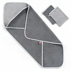 Der flauschige Baumwollstoff des Sets ist sanft zur empfindlichen Babyhaut, atmungsaktiv und besonders angenehm zu tragen. Das Tuch ist ein treuer Begleiter nach dem Babyschwimmen im Schwimmbad oder am Strand im Urlaub. Auch als praktische Unterlage zum Eincremen kannst Du es verwenden. Optisch begeistert das Set durch die niedliche Bestickung und aufgenähte Bären-Öhrchen. Bei 60°C in der Maschine gewaschen, ist es schnell wieder sauber für den nächsten Badeeinsatz.