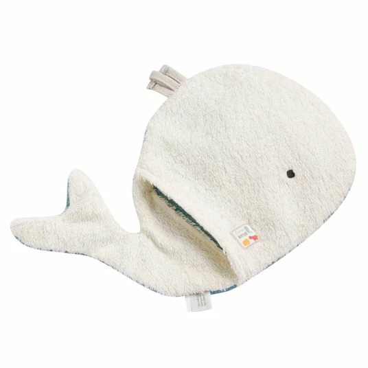 Tierischer Badespaß – das saugstarke Bade-Set aus Kapuzenbadetuch und Waschhandschuh Wal aus der fehnNATUR® Kollektion macht das tägliche Waschen zum Vergnügen für jedes Baby. Das kuschelweiche Babyhandtuch mit niedlicher Kapuze hüllt das Baby sanft ein und schützt zuverlässig vor Kälte und Zugluft. Der Babywaschlappen kann nicht nur zum Baden, sondern auch als Handpuppe verwendet werden – einfach übergezogen wird der Wal schnell zum Leben erweckt. Das natürliche Material aus 100% Bio-Baumwolle aus kontrolliertem und zertifiziertem Anbau ist besonders sanft zu Babys Haut und reinigt bzw. trocknet ganz schonend und mit jeder Menge Spielspaß.