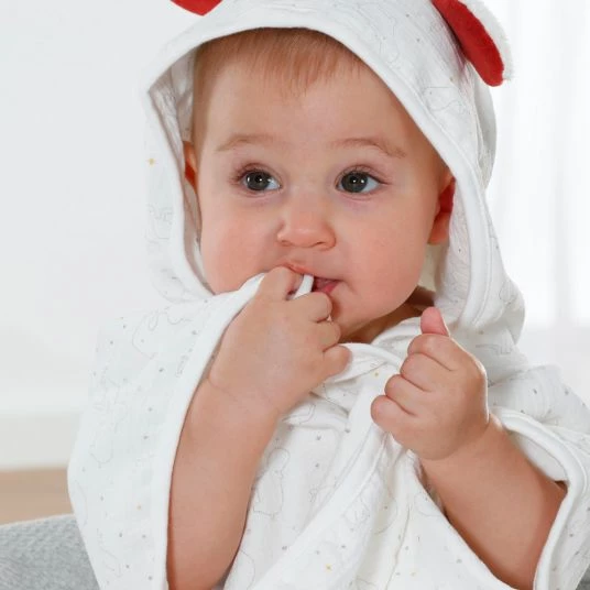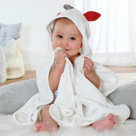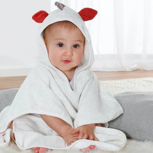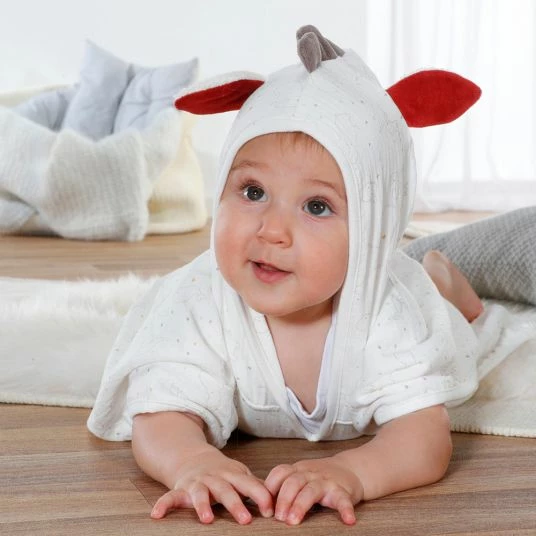 Tierisches Abtrocken nach einem ausgiebigen Bad, Schwimmbadbesuchen oder Badespaß am Strand: Der saugstarke Bade-Poncho Zebra aus der fehnNATUR® Kollektion hüllt den Nachwuchs sanft ein und schützt vor Kälte und Zugluft. Das flauschige Badetuch in sanften Farben sorgt für angenehmen Kuschelspaß: Die Kleinen können sich sicher und geborgen in den Poncho einkuscheln – die süße Kapuze hält das Köpfchen warm! Das natürliche Material aus 100% Bio-Baumwolle aus kontrolliertem und zertifiziertem Anbau ist besonders sanft zu Babys Haut und trocknet ganz schonend.