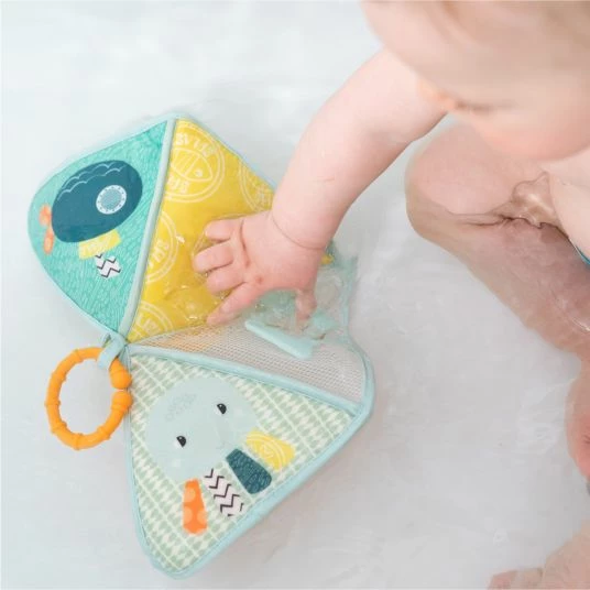 Das regelmäßige Babybad macht nicht jedes Mal so viel Spaß, aber mit dem aufklappbaren Badebuch U-Boot – Plansch & Play von Fehn hat Dein kleiner Weltentdecker eine spannende Beschäftigung in der kunterbunten Meereswelt. Beim Durchblättern des Buches wird Dein Baby viele neue Badefreunde kennenlernen. Das Raschelpapier, ein Spiegel und ein versteckter Beißring hinter der Folie fördern spielerisch seine Sinne und die Fantasie.