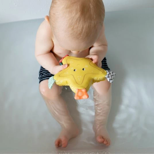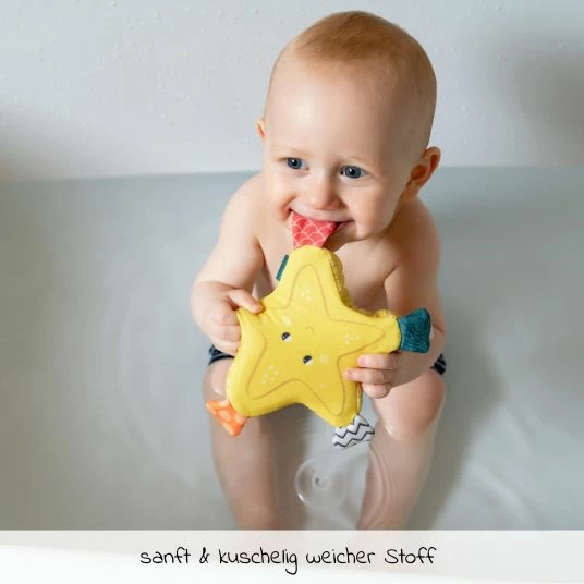 Der süße Seestern lädt mit kunterbunten Farben und den kuschelig weichen Stoffen sowie Knisterpapier zum Greifen, Tasten und Betrachten ein. Er zieht die Neugierde und Aufmerksamkeit Deines kleinen Lieblings immer wieder aufs Neue auf sich und bietet so eine tolle Unterhaltung als niedlicher Wasch-Helfer. Die fröhliche Gestaltung macht den Bade-Schwamm zu einer tollen Geschenkidee, die das Babybad zu einem tollen Erlebnis macht.