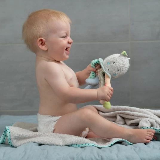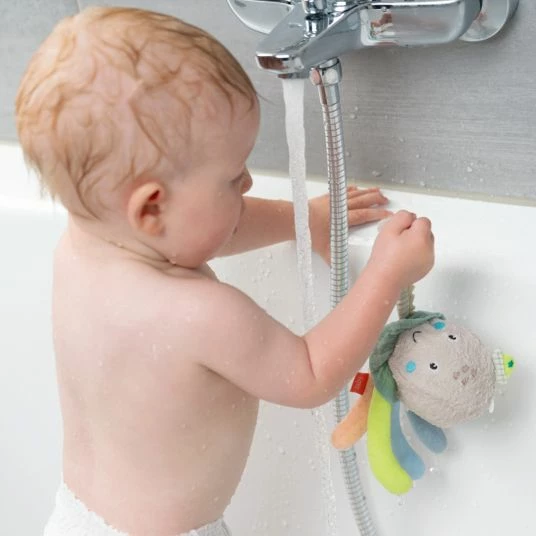 Gemeinsam mit dem Fehn Badetier Oktopuskommt in der Badewanne so schnell keine Langeweile auf. Mit dem niedlichen Meeresbewohner kann Dein Kleines seine motorischen Fähigkeiten, seine Wahrnehmung und seine Auge-Hand-Koordination während der Baderoutine spielerisch fördern. Der süße, schwimmende Oktopus mit lädt mit seinen vielen Armen und den kuschelig weichen Stoffen zum Greifen, Tasten und Betrachten ein.