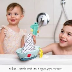 Baby Fehn Badeboot mit Fingerpuppe Krokodil – Plansch & Play
