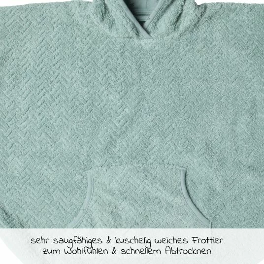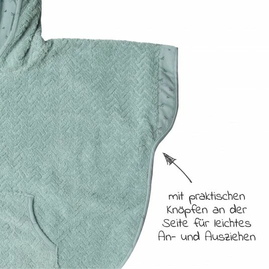 Die praktische Kapuze schützt das empfindliche Köpfchen vor Zugluft. So fühlt sich Dein Baby rundum wohl und sehr geborgen. Der flauschige Baumwollstoff ist dabei sehr sanft zur Babyhaut, atmungsaktiv und bietet einen angenehmen Tragekomfort. Optisch begeistert der Badeponcho mit der dezenten Farbgebung und dem süßen Papierflugzeug-Print. Muss der Poncho gereinigt werden, kannst Du ihn bei 40°C in der Maschine waschen und in den Trockner geben.