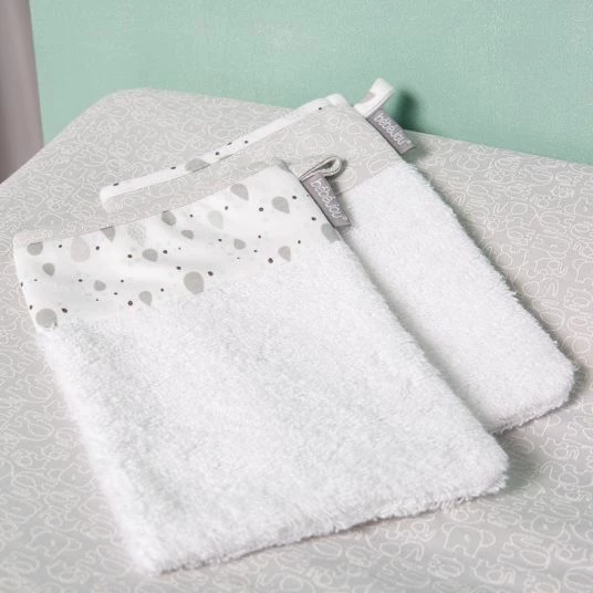 Mit dem Waschhandschuh 2er Pack – Ollie von bébé-jou kannst Du Dein Baby sanft reinigen. Du kannst bequem mit einer Hand in den weichen Waschlappen schlüpfen und Deinen kleinen Schatz damit abwaschen. An der Schlaufe lässt sich der Waschhandschuh zum Trocknen aufhängen. Ein Hingucker im Badezimmer sind die hübschen Allover-Muster.