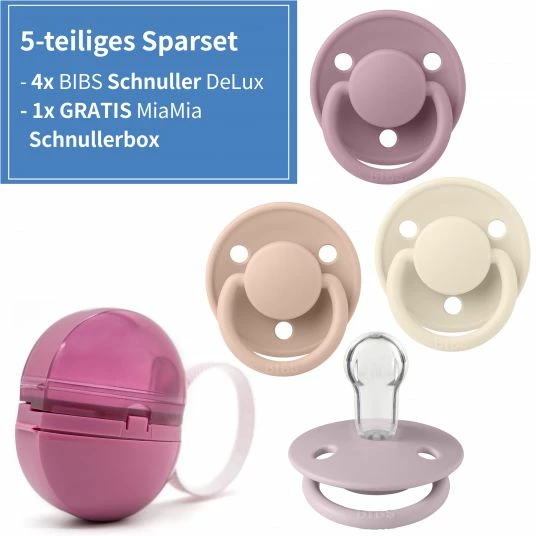 - 5-teiliges Schnuller-Set mit 4 BIBS Schnullern & 2 MiaMia Schnullerketten