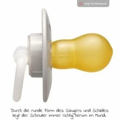Das leicht abgerundete Schild des Schnullers ist mit Lüftungslöchern versehen. So kommt ausreichend Luft an den kleinen Mund und die zarte Babyhaut wird vor Hautreizungen geschont. Der Schnuller schmiegt sich dabei sanft an die Haut Deines Babys an und verhindert Druckstellen – so fühlt sich Dein Baby rundum wohl!
