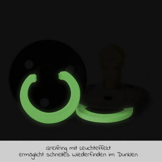 Durch den Greifring mit Leuchteffekt eignet sich der Schnuller besonders gut zur Beruhigung in der Nacht – so kannst Du oder Dein kleiner Spatz den Schnuller im Dunklen rasch wiederfinden. Außerdem kannst Du am praktischen Greifring des Schnullers eine Schnullerkette befestigen – der optimale Alltagsbegleiter in einem klassisch eleganten Design für Tag und Nacht.