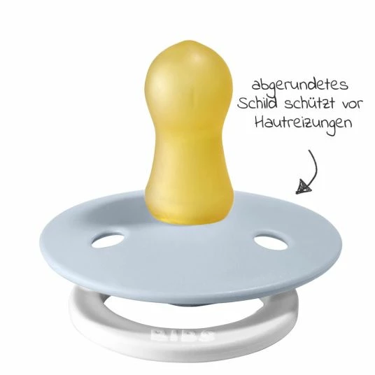 Das leicht abgerundete Schild des Schnullers ist mit Lüftungslöchern versehen. So kommt ausreichend Luft an den kleinen Mund und die zarte Babyhaut wird vor Hautreizungen geschont. Der Schnuller schmiegt sich dabei sanft an die Haut Deines Babys an und verhindert Druckstellen – so fühlt sich Dein Baby rundum wohl!
