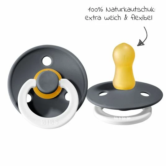 Das 2-teilige Leucht-Schnuller-Set – Colour Night – Gr. 0-6 M von BIBS besteht aus reinem Naturkautschuk – frei von BPA, PVC & Phthalaten. Das samtweiche, flexible und hautschonende Material vermittelt Deinem kleinen Spatz ein natürliches Sauggefühl. Durch die kirschförmige Form und das runde Schild ahmt der Schnuller die Form der Mutterbrust auf natürliche Weise nach und ist besonders kiefergerecht.