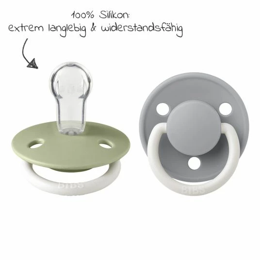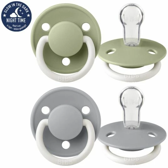 Bibs Leucht-Schnuller – De Lux 2er Pack – Night – Silikon – Sage / Cloud – Gr. 0-36 M
