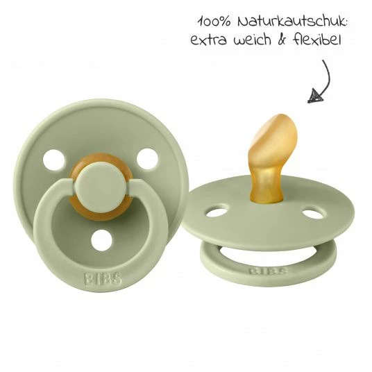2 anatomische Bibs Schnuller Colour aus Naturkautschuk 0-6 M – Sage / Ivory