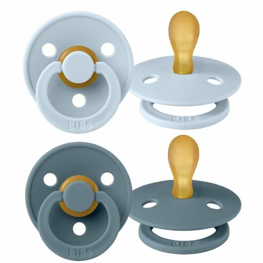 2 symmetrische Bibs Schnuller Colour aus Naturkautschuk 0-6 M – Babyblue / Petrol