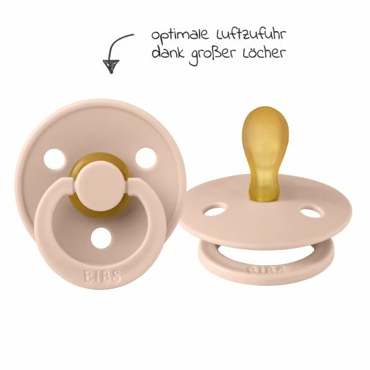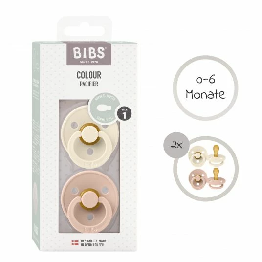 2 symmetrische Bibs Schnuller Colour aus Naturkautschuk 0-6 M – Ivory / Blush