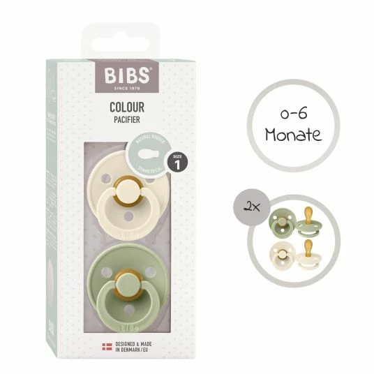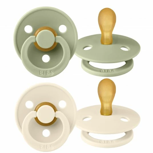 2 symmetrische Bibs Schnuller Colour aus Naturkautschuk 0-6 M – Sage / Ivory