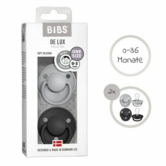 Bibs Schnuller – De Lux 2er Pack – Silikon – Cloud / Black – Gr. 0-36 M