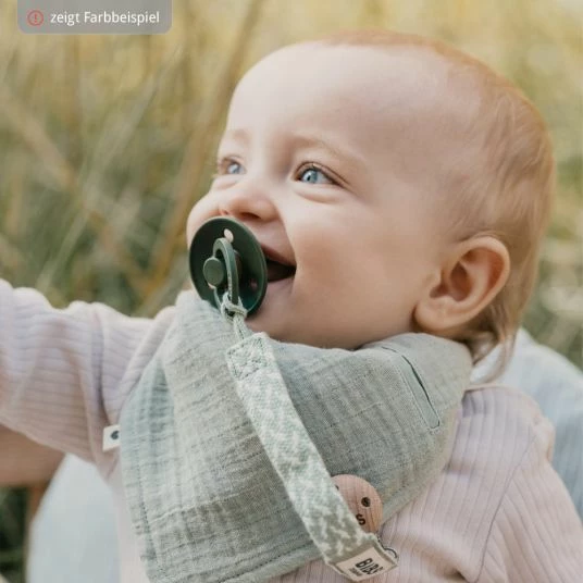 - der Schnuller bleibt immer in der Nähe dank sicherer Befestigung mit Metall-Clip