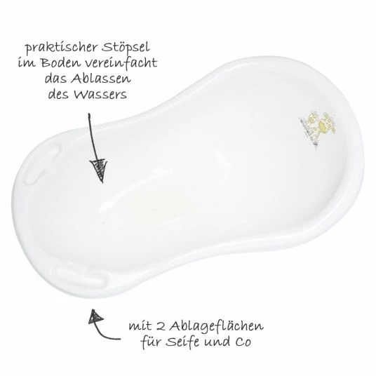 Die weiße Badewanne 100 cm Zebra von Bieco ist ideal für das Bad Deines Babys. Die schöne Wanne mit Giraffen-Motiv hat zwei Griffmulden, die Du auch als praktische Seifenablage nutzen kannst. Über den Auslaufstöpsel in der Mitte kannst Du nach dem Baden ganz leicht das Wasser wieder abfließen lassen.