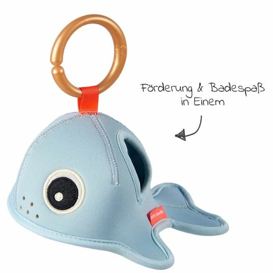 Mit dem Done by Deer Badespielzeug Wally kommt in der Badewanne so schnell keine Langeweile auf. Weicher, kuscheliger Stoff und kleine Details wie die kleinen Flossen laden zum Berühren und Greifen ein. Auf spielerische Weise werden so die Sinne stimuliert. Besonders spannend wird es für Deinen Nachwuchs, wenn Wally untergetaucht ist und danach auf den Kopf gedreht wird: Durch kleine Löcher tropft nun das Wasser aus dem Neopren-Köpfchen und animiert zu weiteren Tauchgängen.