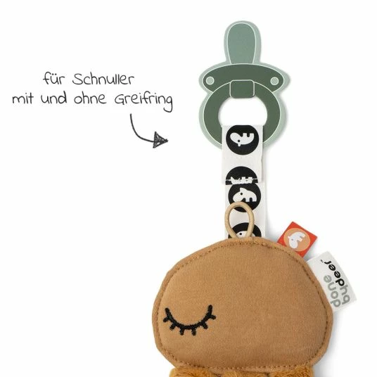 Done by Deer Mini-Kuscheltier mit Schnullerhalter – Jelly in Senfgelb
