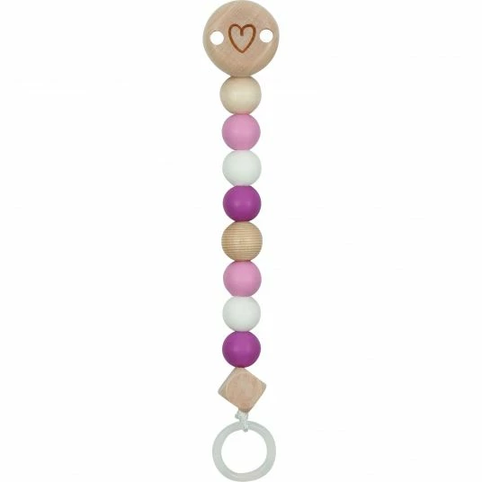 Goki Schnullerkette mit Silikonperlen – Herzchen in Rosa