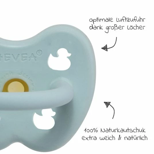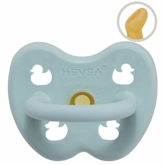 - 1 HEVEA Schnuller aus Naturkautschuk – kiefergerecht – Ente – Baby Blue – Gr. 0-3 M