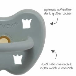 Für viele Babys hat ein Schnuller eine beruhigende Wirkung und ist daher immer wieder im Einsatz. Der kiefergerechte Schnuller aus Naturkautschuk von HEVEA in süßem Baby Blue beruhigt nicht nur, sondern ist dabei auch noch sanft zur Haut.