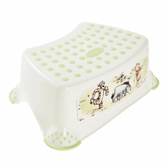 Auch die 4 Standfüße sind mit entsprechenden Noppen und Rändern versehen, so dass der Hocker an Ort und stelle bleibt. Landet mal etwas Zahnpasta auf der Oberfläche oder es wird generell eine Reinigung nötig, ist er mit einem feuchten Tuch schnell wieder zum glänzen gebracht. Dank robustem Kunststoff ist der Hocker besonders langlebig. Mit dem niedlichen Winnie Pooh Aufdruck wird Tomek schnell zum geliebten Alltagshelfer.