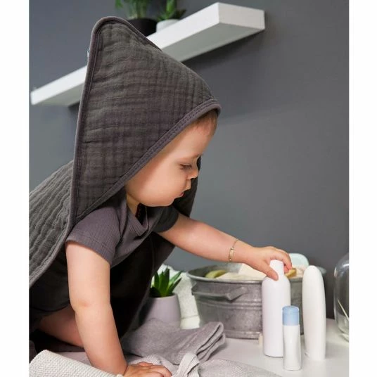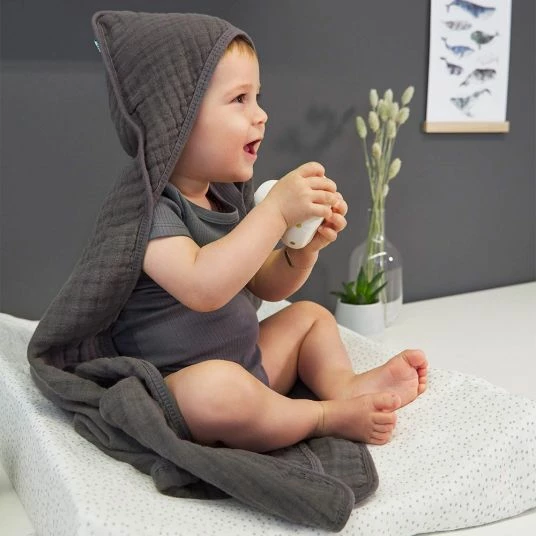 In das 90 x 90 cm große Kapuzenbadetuch Muslin von Lässig kannst Du Deinen kleinen Schatz nach seinem Bad kuschelig warm einwickeln. Das weiche Handtuch hat eine Kapuze, die das Köpfchen vor Zugluft schützt und die Haare trocknet. Dank des besonders saugfähigem Mull-Materials aus reiner Baumwolle nimmt das Badetuch gut Feuchtigkeit auf. An einer Schlaufe kannst Du das Tuch bequem aufhängen. Das vorgewaschene, zweilagige Badetuch ist hautfreundlich, atmungsaktiv und besonders sanft zur Haut Deines Babys. Das pflegeleichte Handtuch kannst Du bequem bis 40 °C in der Maschine waschen. Der Musselin-Stoff wird durch jeden Waschgang immer weicher und trocknet außerdem sehr schnell.