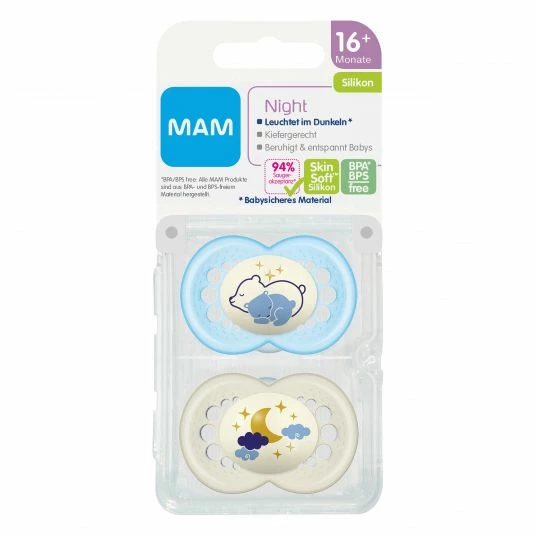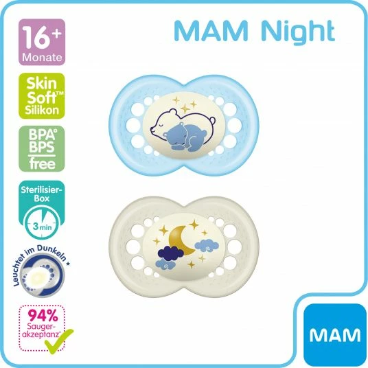 MAM Leucht-Schnuller 2er Pack Night – Silikon ab 16 M – Bär & Mond