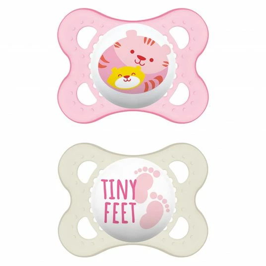 Babys, ganz besonders Neugeborene, haben ein sehr großes Saugbedürfnis und melden sich lautstark, wenn sie Hunger haben oder beruhigt werden möchten. Zur Beruhigung kann ein Schnuller sehr praktisch sein: Er tröstet, gibt Sicherheit und kann beim Einschlafen helfen. Mit dem MAM Schnuller 2er Pack Original aus Silikon in stillfreundlicher Form hast Du immer einen Trostspender dabei. Mit niedlichen Motiven und zarten Farben setzen die beiden MAM Schnuller einen trendigen Akzent.