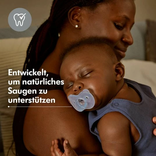 Damit die Schnuller für die Gesichts- und Mundmuskulatur Deines Babys angenehm sind, sind sie besonders leicht und mit einem kleinen, weichen Schild ausgestattet. Das ergonomische Schild der Schnuller lässt Dein Kleines Deinen vertrauten Geruch und Nähe sehr gut wahrnehmen.