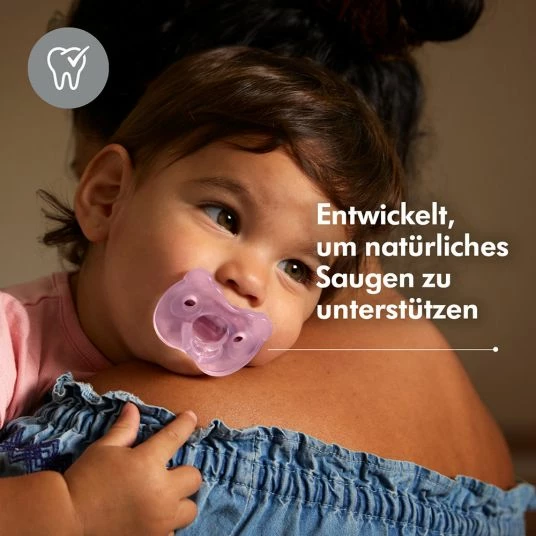 Damit die Schnuller für die Gesichts- und Mundmuskulatur Deines Babys angenehm sind, sind sie besonders leicht und mit einem kleinen, weichen Schild ausgestattet. Das ergonomische Schild der Schnuller lässt Dein Kleines Deinen vertrauten Geruch und Nähe sehr gut wahrnehmen.