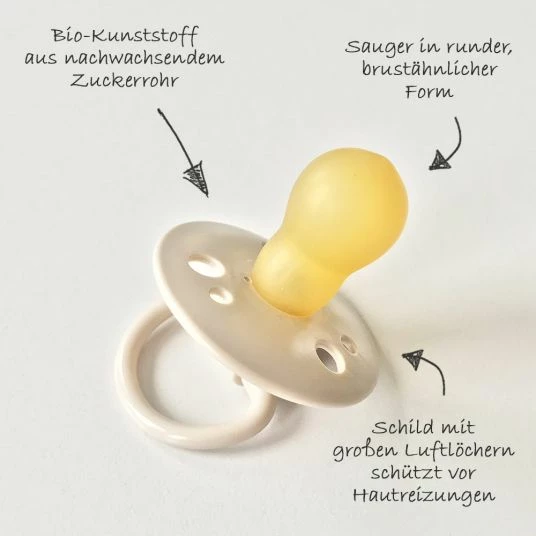 - Material: Saugteil aus natürlichem Latex, Schnullerschild aus Bio-Kunststoff aus Zuckerrohr