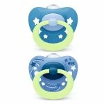 Für viele Babys hat ein Schnuller eine beruhigende Wirkung und ist daher immer wieder im Einsatz. Der NUK Schnuller Signature Night aus Silikon in Rosa beruhigt und lässt sich auch während der Stillzeit verwenden. Der Sauger der Brustwarze nachempfunden, so dass eine gesunde orale Entwicklung gefördert wird.