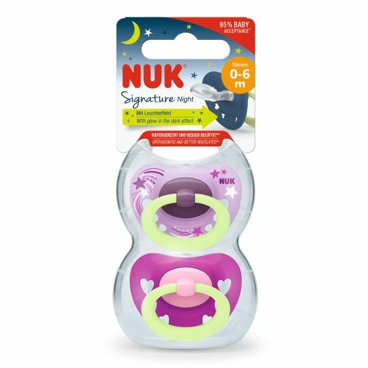 - 2 NUK Leucht-Schnuller 2er Pack Signature Night – Silikon 0-6 M – Rosa