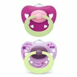 Der dünne, schmale Saugerhals verringert den Druck auf den Kiefer und die Zähnchen, während das flache Lutschteil und die glatte Unterseite viel Freiraum für die natürliche Saugbewegung ermöglichen. So werden die BPA-freien NUK Schnuller sehr gerne angenommen.