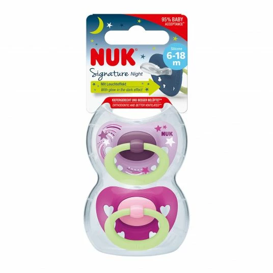 - 2 NUK Leucht-Schnuller 2er Pack Signature Night – Silikon 6-18 M – Rosa