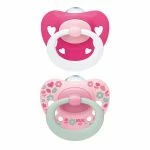 Der dünne, schmale Saugerhals verringert den Druck auf den Kiefer und die Zähnchen, während das flache Lutschteil und die glatte Unterseite viel Freiraum für die natürliche Saugbewegung ermöglichen. So werden die BPA-freien NUK Schnuller sehr gerne angenommen.