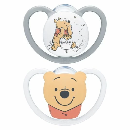 Unsere Kleinsten haben nicht nur von Beginn an ihren eigenen Kopf, sondern auch körperlich völlig unterschiedliche Eigenschaften. Die noch so junge und feine Haut der Babys ist besonders empfindlich. Der Schnuller Space – Disney Winnie Pooh von NUK lässt die sensible Babyhaut atmen. Seine besonders große Öffnungen sorgen für eine maximale Luftzirkulation und somit für trocknere Babyhaut. Der Space Schnuller besticht zudem durch sein besonders flaches und dünnes Lutschteil, das ausreichend Platz für die natürliche Saugbewegung bietet. Es minimiert den Druck auf die kleinen Zähnchen und den Kiefer. Der Beruhigungssauger fügt sich deshalb angenehm in den kleinen Mund ein und minimiert das Risiko von Zahn- und Kieferfehlstellungen.