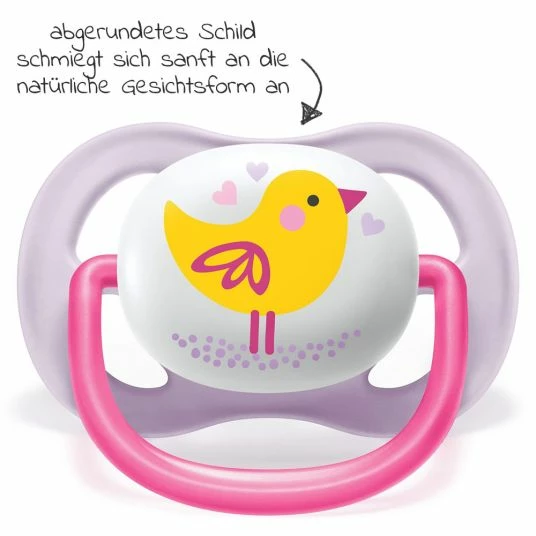 Für viele Babys hat ein Schnuller eine beruhigende Wirkung und ist daher immer wieder im Einsatz. Der Philips AVENT Ultra Air Collection Animals Schnuller im praktischen 2er Pack beruhigt nicht nur, sondern ist dabei auch noch atmungsaktiv zur Haut. Ausgestattet mit 4 extra großen Löchern sorgt der Ultra Air dafür, dass die Haut rund um den Babymund trocken und weich bleibt. Auf diese Weise können Hautreizungen vermieden werden.