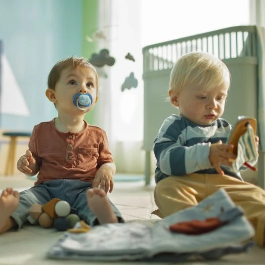 Besonders praktisch ist die Transportbox, in der die beiden Beruhigungs-Helfer zu Dir nach Hause kommen: In diesem Behälter können die Schnuller nicht nur aufbewahrt, sondern auch mit etwas Wasser in der Mikrowelle sterilisiert werden. So sind sie für den nächsten Einsatz sauber. Mit zwei unterschiedlichen, niedlichen Designs sind die beiden BPA-freien Schnuller farbenfrohe, fröhliche Hingucker.