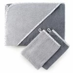 Wörner 3-tlg. Bade-Set – Kapuzenbadetuch inkl. 2 Waschhandschuhe 80 x 80 cm – Sterne Grau