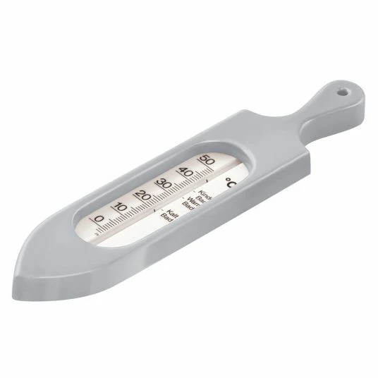 Mit dem Badethermometer im Design Stone Grey von Rotho Babydesign hast Du die Badetemperatur Deines kleinen Schatzes immer im Griff. Das Thermometer ist mit Petroleum als Messflüssigkeit gefüllt und reagiert dementsprechend schnell. Es hat eine Skala von -2 °C bis 50 °C. Zur Reinigung kannst Du es einfach unter warmes Wasser halten.