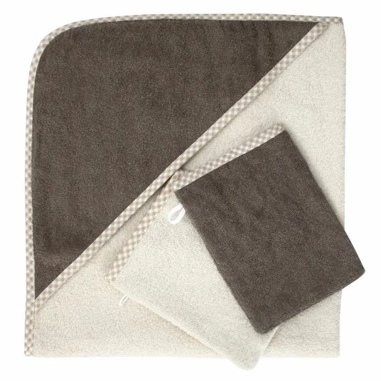 Das flauschig-weiche 3er Set Kapuzenbadetuch mit 2 Waschhandschuhen in Natur Hellbraun von Wörner ist genau das Richtige für Deinen Nachwuchs, denn es hält Dein Kind nach dem Baden wohlig warm. Du kannst Deinen Liebling einfach in das Tuch einwickeln und ihm die Kapuze über das Köpfchen ziehen – so ist es vor kalter Luft geschützt. Das extra saugfähige Frottee aus reiner Baumwolle liegt besonders angenehm auf der Haut und lässt sich bequem bei 60° C in der Maschine waschen.