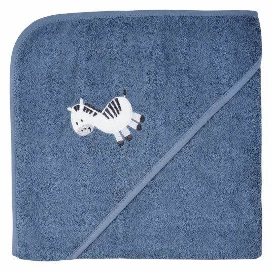 1 Wörner Kapuzenbadetuch 100 x 100 cm – Stickerei Zebra – Dunkelblau