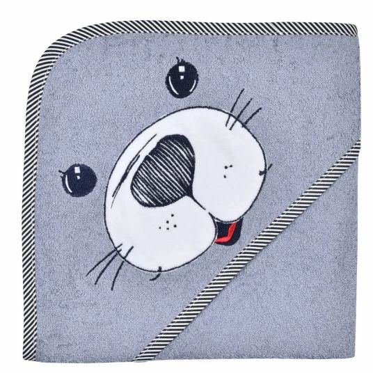 Das flauschig weiche Kapuzenbadetuch Seehund Grau von Wörner nimmt nicht nur die Nässe auf, sondern hält Dein Kind nach dem Baden auch wohlig warm. Du kannst Dein Baby einfach in das Tuch einwickeln und ihm die Kapuze über das Köpfchen ziehen – so ist es vor kühler Zugluft geschützt. Das extra saugfähige Frottee besteht aus reiner, hautfreundlicher Baumwolle. Super niedlich ist die große Stickerei auf der Kapuze.